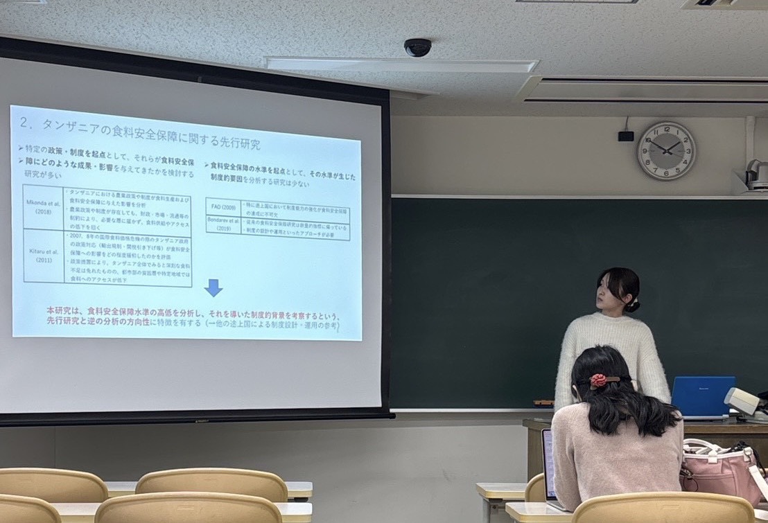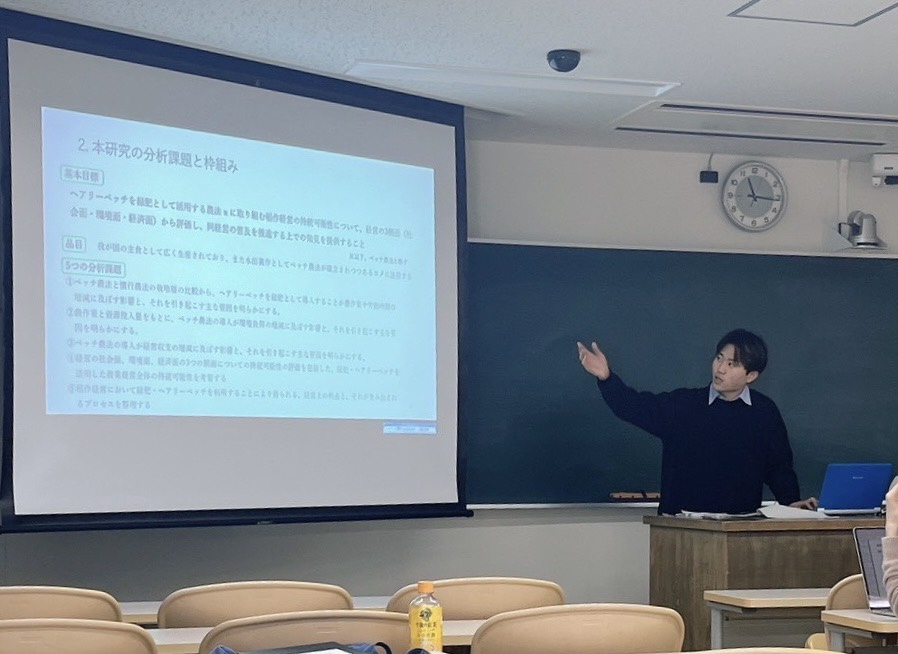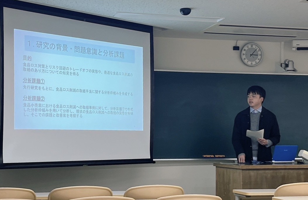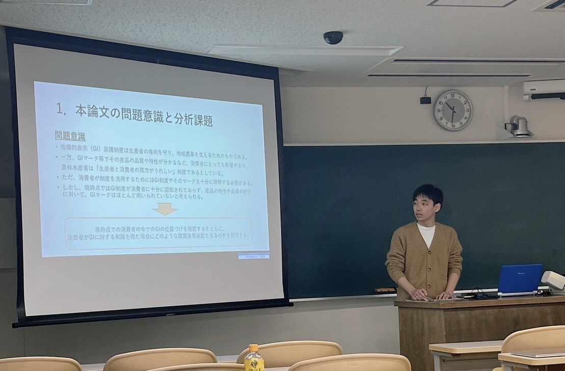 2月10日(火)、食料・環境経済学科の卒業論文発表会が開催されました。当分野からは4名が、それぞれの研究成果を発表しました。